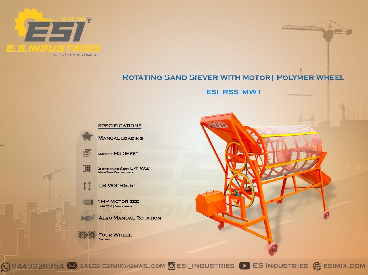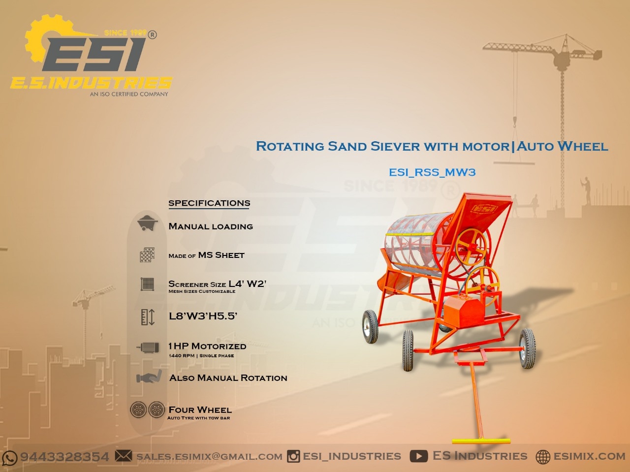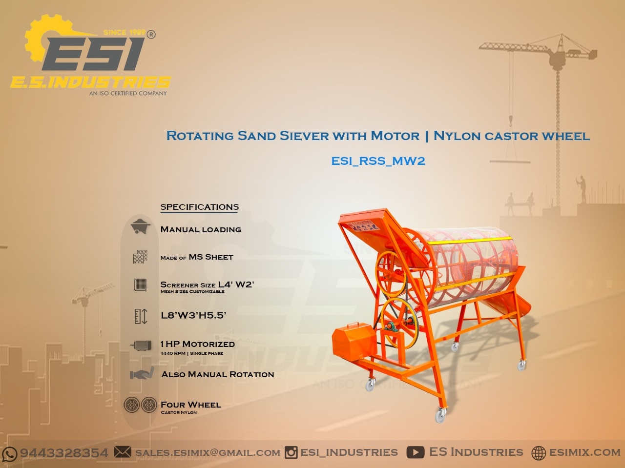 A reversible concrete mixer is a machine that rotates its drum in both forward and reverse directions to efficiently mix and discharge concrete. ES Industries manufactures and supplies these mixers, which are used in construction for their speed and consistency, as the drum rotates one way to mix materials and reverses to pour the final product. How a reversible concrete mixer works Mixing: The drum rotates in a forward direction, and internal blades mix the raw materials like cement, sand, and aggregate. Discharging: The drum's rotation is reversed, and the mixed concrete is discharged from the rear opening. This feature eliminates the need for a separate discharge mechanism. About ES Industries' reversible concrete mixers Manufacturer: ES Industries is a Coimbatore-based manufacturer, exporter, and supplier of various construction equipment, including concrete mixers. Products: They produce a range of reversible concrete mixers, including mini mobile and portable models. Features: These mixers can be powered by diesel engines or motors and are designed for easy portability and operation on remote sites. Applications: Their products are suitable for small to medium-scale construction projects and offer advantages like lower labor costs and consistent mixing. Key benefits Efficiency: The dual-direction rotation allows for faster and more consistent mixing. Cost-effectiveness: They help reduce costs through lower labor requirements and high efficiency. Portability: Many models are compact and easy to move to different construction sites. Versatility: They are suitable for use in locations without electricity and for mixing smaller batches where ready-mix is not feasible.
